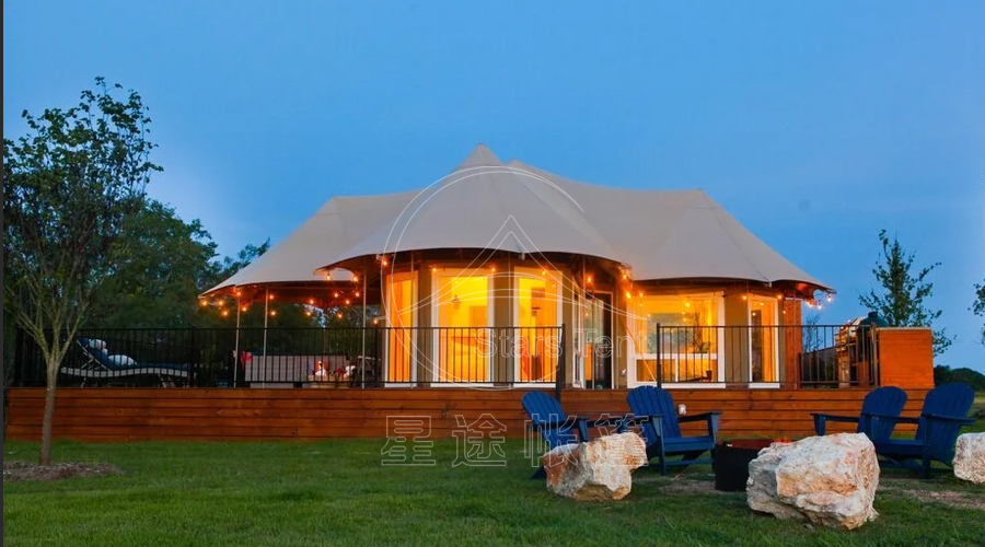 淡蓝为主,营造出 “空灵雅致” 的东方美学氛围;帐篷内部的装饰则选用中式风格的灯具 —— 灯罩采用宣纸材质,灯光透过宣纸,在墙面投射出竹影、梅枝的图案,搭配实木家具与丝绸靠垫,让住客在欧洲的营地中,也能感受到中式生活的雅致。这款帐篷推出后,迅速获得法国某高端度假村的青睐,订单量达 25 顶,许多住客表示:“在帐篷里仿佛置身中国江南,这种跨文化的住宿体验太特别了。