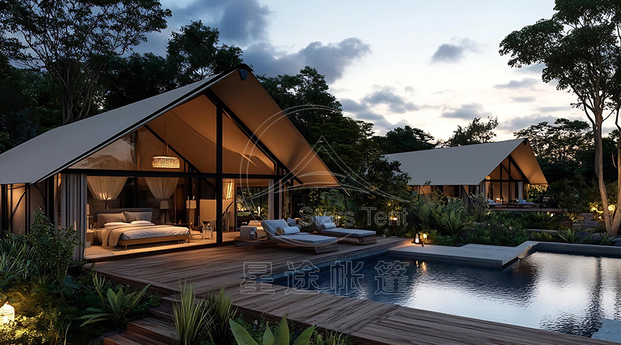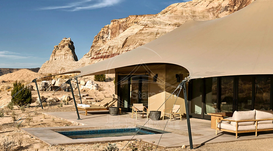 从中东的高温沙漠到北美的严寒极地,从东南亚的暴雨沿海到中国西北的大风戈壁,户外环境的多样性与极端性对酒店帐篷的适配性提出了严苛要求。星途酒店帐篷凭借强大的技术研发与产品测试能力,打造出适应不同极端环境的专用帐篷系列,在各种恶劣环境中稳定运营,彰显产品的硬核品质,让文旅项目突破环境限制,在全球各类户外场景中落地。
