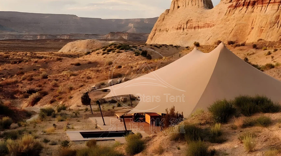 星途之所以能成功敲开国际市场的大门,核心在于对全球不同文旅市场需求的精准把握,摒弃传统的标准化产品输出模式,推行深度本土化设计,让每一款出口帐篷都能精准适配当地的气候环境、文化习俗与消费偏好。针对中东地区高温、风沙、干燥的极端气候特点,星途专门优化了帐篷面料与通风系统,选用抗风沙、耐高温的特种面料,搭配智能新风系统,即使室外温度高达50℃,室内仍能保持26℃左右的舒适温度,有效抵御强风沙侵蚀,同时在帐篷外观与内饰中融入阿拉伯传统几何纹样与书法元素,既贴合当地的文化审美,又彰显了地域文化特色,成为中东地区高端度假村的首选产品。